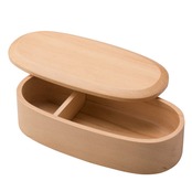 サイズ約 幅14.6×高さ6(cm)容量約 450ml内容量1個(本体、仕切り、ランチバンド)材質天然杉(ウレタン塗装)生産国中国製食器洗い乾燥機使用不可電子レンジ使用不可区分在庫商品返品・キャンセル区分(小型商品)つなぎ目のない美しい形のくりぬき型弁当箱●天然杉をくり抜いて作られた弁当箱です。●つなぎ目がないので、見た目も美しく丈夫です。●ウレタン塗装が施されているので、汚れにくく、お手入れが簡単です。●木目がお弁当をより一層美味しく見せてくれるので、お花見などの行楽や行事にもおすすめです。●使い込むほどに増していく風合いをお楽しみいただけます。おすすめポイントつなぎ目のない美しい形のくりぬき型弁当箱 450ml天然杉をくり抜いて作られた450mlの弁当箱です。つなぎ目がないので、見た目も美しく丈夫です。白木と違ってウレタン塗装が施されているので、油っぽいおかずを入れても大丈夫なので使いやすいです。職人の手で作られた木目がお弁当をより一層美味しく見せてくれるので、普段使いはもちろん、お花見などの行楽や行事にもおすすめです。職人の丁寧な手作業によって作られたなめらかなシルエット継ぎ目がない美しい見た目に、なめらかな丸みを帯びたシルエットは手仕事の丁寧さとぬくもりを感じる逸品です。使い込むほどに増していく風合いをお楽しみいただけます。安心・安全な製品をお届け当商品を製造しているメーカーの同じ塗料を使用している製品が、食品衛生法・食品、添加物等の規格基準に適合しており、同じ塗料を使用している当商品も規格基準を満たしております。お客様に安心・安全を保障された商品をお届け致します。使用方法お手入れはスポンジで洗浄し布でふき取り使用後は中性洗剤を使用し、柔らかいスポンジで洗ってください。漆またはウレタン塗装によりコーティングされていますのでさっと布巾で拭いていただき、その後しっかりと乾燥させてください。漆器の匂いの取り方塗りあがった漆器は漆やウレタンの特有の匂いがします。匂いが気にる場合は60度~70度のお湯を注ぎ、軽くかき回してすぐに捨て、これを繰り返します。風通しのいい日陰で数日乾燥させることで、匂いは揮発されます。ご注意点木製の特徴全て天然木を使用して作っていますので、商品によって木目・色合い・節・木のシミ(黒や青っぽいもの)・多少のキズがあるものもございます。その素材感がひとつひとつ表情の異なるオンリーワンの商品です。天然素材を使用した商品の良さとしてご理解ください。LH1486 LH1490カテゴリホーム > カテゴリ一覧 > ランチボックス > 弁当箱 > 499ml以下 > 1段