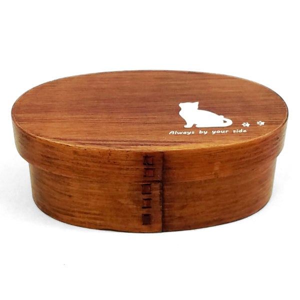 サイズ約 幅16.5×奥行10×高さ6(cm)容量約 400ml内容量1個(本体、仕切り、バンド)材質杉材(漆塗装)カラーシロネコ生産国日本製食器洗い乾燥機使用不可電子レンジ使用不可備考原産国:中国区分在庫商品返品・キャンセル区分(小型商品)デザイン印刷されたおしゃれな曲げわっぱ●かわいいプリントが蓋にデザインされている曲げわっぱ弁当箱です。●木目に深みが増す漆塗装が施されています。●内容量は400mlです。●調湿機能がある杉材を使用しているので、お弁当の中の水分を調節しご飯が冷めても美味しく頂けます。●超軽量なので、持ち運びに便利です。●取り外し可能な仕切りとゴムバンドが付いています。おすすめポイントかわいい猫のプリント入りの曲げわっぱ弁当箱木目に深みが増す漆塗装にかわいい猫のプリントが入った曲げわっぱ弁当箱です。木製の曲げわっぱと洋風のデザインプリントの組み合わせがほっこりとした気持ちにさせてくれます。曲げわっぱ弁当箱は食材が映えるので、見た目も味も他のお弁当箱とは違う特別感を味わえます。木が呼吸し水分を調節!ご飯が美味しい曲げわっぱ木製の曲げわっぱのお弁当箱は、木が余分な水分は外に出し、必要な水分を保つため、炊き立てご飯のふっくらもちもちの状態を保ち、美味しいご飯を味わうことが出来ます。ご飯が冷めてしまっても、丁度いい水分の調節ができているので美味しく頂けます。日本の四季に一年中対応できる伝統技術の味わいをお楽しみいただけます。手にとって驚くほどの軽さ 小判型400ml手にとって驚くのが曲げわっぱの軽さです。わずか約100gと超軽量で、軽い弁当箱は持ち運びやすくて負担になりません。※曲げわっぱは水分調整を行うので重さには個体差があります深さがあるからのっけ弁もしやすい深さは6cmあるのでご飯を詰めて、おかずを上にのせるだけののっけ弁もできます。忙しい朝でも簡単に出来て、ガッツリ食べたい方にもおすすめです。明日はどんなお弁当にしようかな?とお弁当作りが楽しくなるわっぱ弁当はシンプルな作りだからこそ食材を引きたててくれます。明日はどんなお弁当を作ろうかと考えたり、盛り付けを楽しんだり、観て楽しみ、香りを楽しみ、SNSでも多くの方が曲げわっぱのある暮らしを楽しまれています。曲げわっぱはいろんな楽しみ方ができるので、毎日の暮らしを鮮やかにしてくれます。商品詳細取り外し可能な仕切りとゴムバンド付きお弁当箱にはT字の仕切りが付いています。こちらもお弁当箱と同じ杉材で作られており、風合いを損なうことなく、おかずとご飯をしっかり区切ることができます。またシンプルなブラックのゴムバンドも付いているので、持ち運ぶ際にしっかり固定できます。※あくまでも目安としてご検討ください。使用方法お手入れはスポンジで洗浄し布でふき取り使用後は中性洗剤を使用し、柔らかいスポンジで洗ってください。漆またはウレタン塗装によりコーティングされていますのでさっと布巾で拭いていただき、その後しっかりと乾燥させてください。漆器の匂いの取り方塗りあがった漆器は漆やウレタンの特有の匂いがします。匂いが気にる場合は60度〜70度のお湯を注ぎ、軽くかき回してすぐに捨て、これを繰り返します。風通しのいい日陰で数日乾燥させることで、匂いは揮発されます。なるべく早く匂いを取りたい場合は、米のとぎ汁に少量の酢を混ぜたものに1時間ほどつけ置き、薄めた食用酢を布巾にしみこませ拭いてください。その後、米びつの中に数時間入れておく作業を繰り返し、洗剤で洗っていただければ匂いは解消されます。ご注意点木製の特徴全て天然木を使用して作っていますので、商品によって木目・色合い・節・木のシミ(黒や青っぽいもの)・多少のキズがあるものもございます。その素材感がひとつひとつ表情の異なるオンリーワンの商品です。人の手では作れない天然素材を使用した商品の良さとしてご理解ください。カテゴリホーム > カテゴリ一覧 > ランチボックス > 弁当箱 > 499ml以下 > 1段ホーム > ブランド一覧 > Thermos(サーモス)関連商品別の色・サイズを見る同じシリーズを見るLH6585 LH6663 LH1486 LH1490